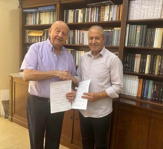 العموم نيوز- توقيع اتفاقية الطبعة الثالثة من رواية “المهطوان” ” للروائي الأردني رمضان الرواشدة مع الناشر الأستاذ ماهر الكيالي مدير عام المؤسسة العربية للدراسات والنشر في بيروت