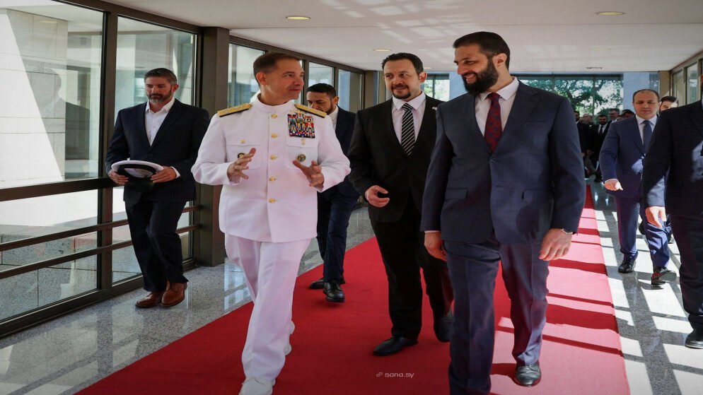 العموم نيوز: استقبل الرئيس السوري أحمد الشرع، وعقيلته لطيفة الدروبي، الجمعة، في قصر الشعب بدمشق، قائد القيادة المركزية الأميركية الأدميرال تشارلز برادلي كوبر، وعقيلته سوزان كوبر، إلى جانب المبعوث الخاص للولايات المتحدة إلى سوريا توماس باراك، بحضور عدد من الوزراء وكبار المسؤولين.