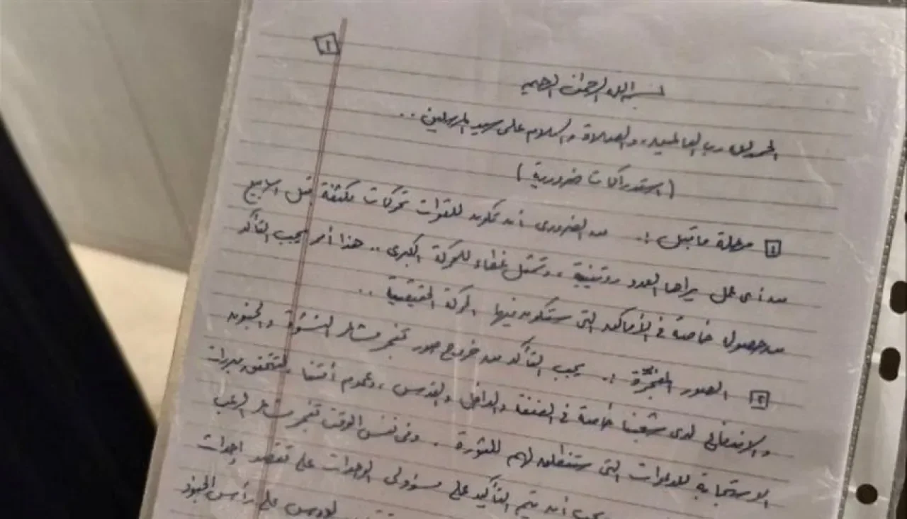وقال جيش الاحتلال إن الوثيقة عثر عليها في قطاع غزة، وأن السنوار كتبها بخط يده في أغسطس 2022.