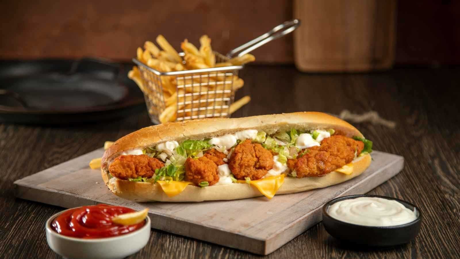 يمتاز هذا الساندويش بمزيج من الدجاج المقرمش والتوابل الشهية، مع صوص كريمي يوازن الحرارة، ليقدّم وجبة لذيذة وسريعة التحضيرت ناسب جميع أفراد العائلة.