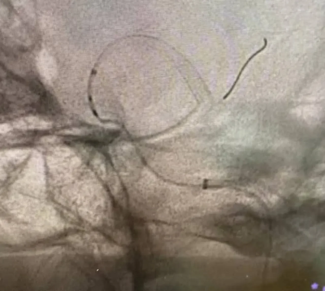 وخلال العملية، تم تركيب شبكة دقيقة بين الشريان الدماغي الأوسط والشريان السباتي الداخلي، ما ساعد على تحويل مسار الدم بعيدًا عن الكيس الدموي المنفجر، وبالتالي وقف النزيف بشكل كامل.