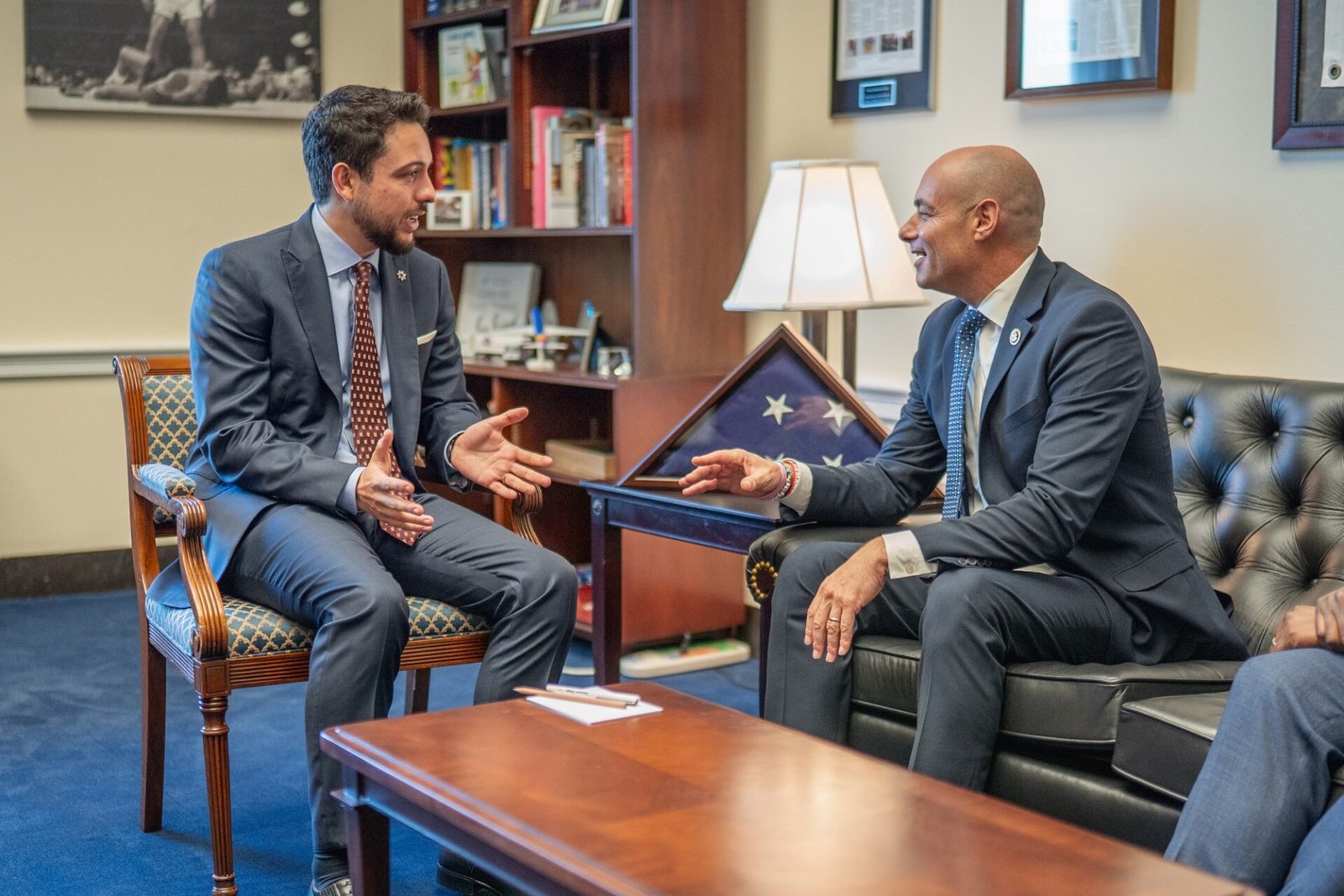 العموم نيوز: أكد سمو الأمير الحسين بن عبدﷲ الثاني، ولي العهد، خلال لقاءات عقدت في واشنطن، الخميس، مع عدد من أعضاء الكونغرس الأميركي، أهمية تعزيز التبادل التجاري بين الأردن والولايات المتحدة، داعيا إلى توسيع الاستفادة من الاتفاقيات المبرمة بين البلدين.